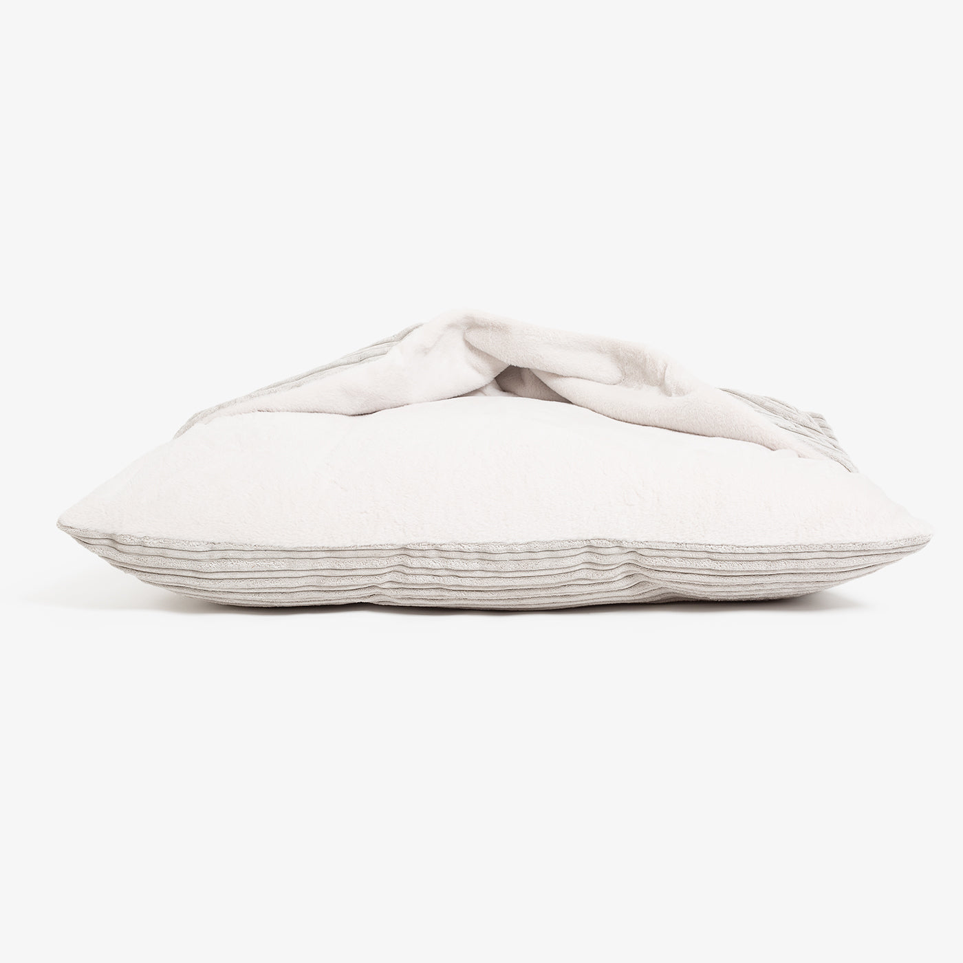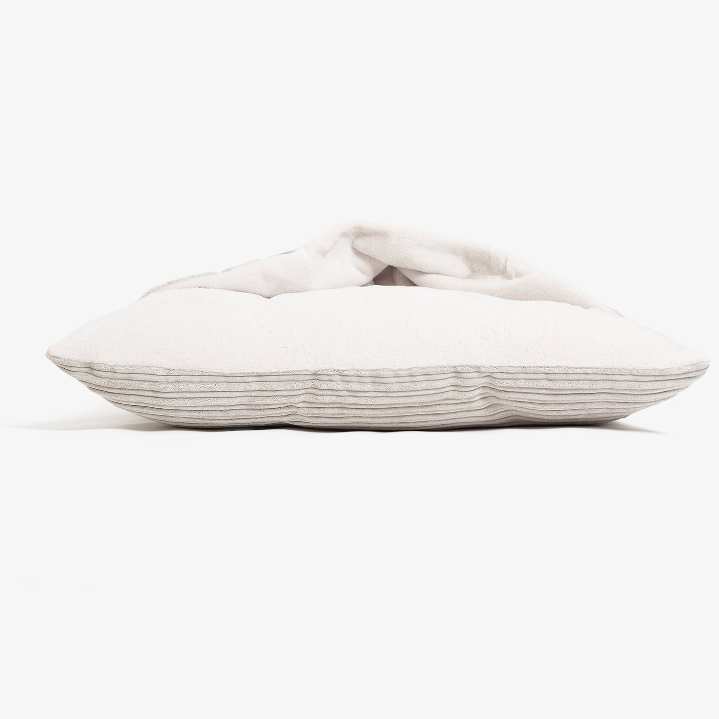 Burrow Dog Bed – Light Grey Plush Sleepy Bed with Hooded Cover & Washable Cushion by Lords & Labradors - ECOVIRA