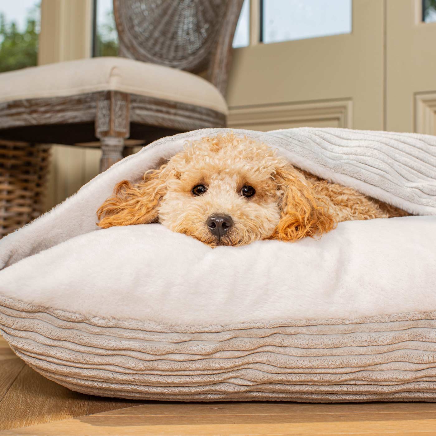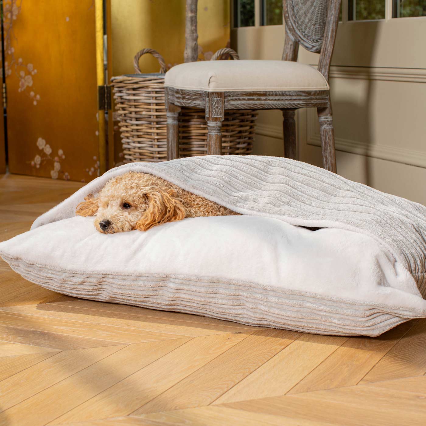 Burrow Dog Bed – Light Grey Plush Sleepy Bed with Hooded Cover & Washable Cushion by Lords & Labradors