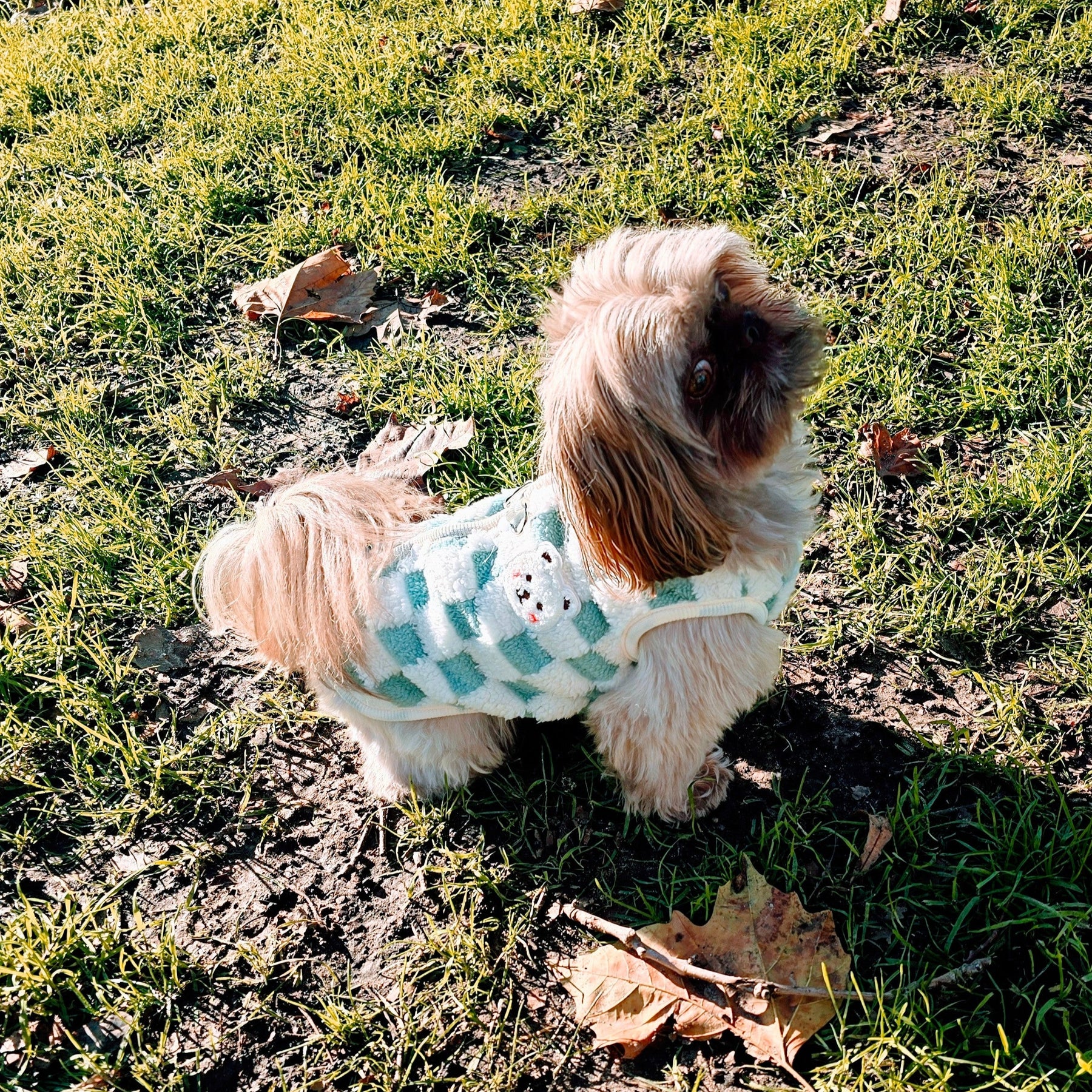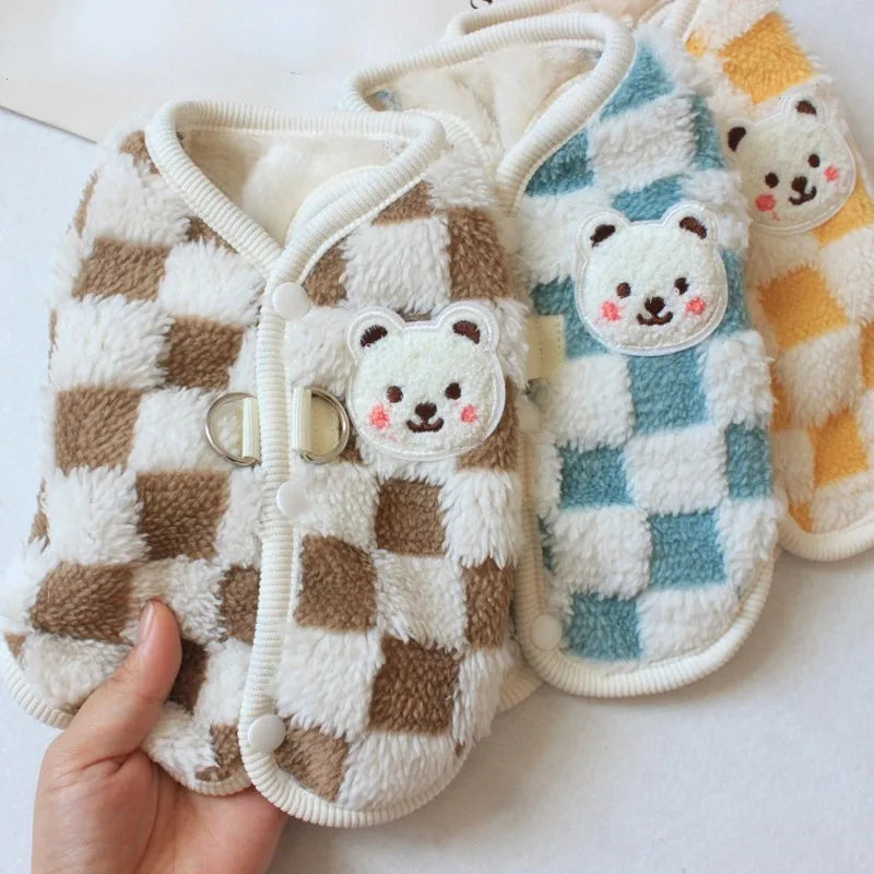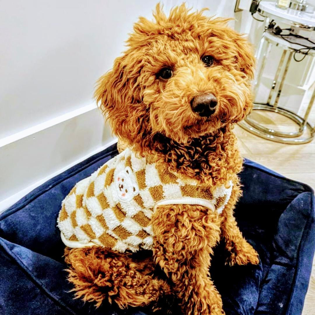 Your pooch will look super cute in this chequered teddy fleece style vest. Featuring a teddy bear motif and chequered pattern body, this soft and comfortable vest is ideal for both small and medium dogs and puppies, giving extra warmth, snuggle and cuteness for the Spring months. Can be worn under a raincoat for extra layers or even round the house on a chilly day. Unique easy for your dog or pup to wear and totally adorable.